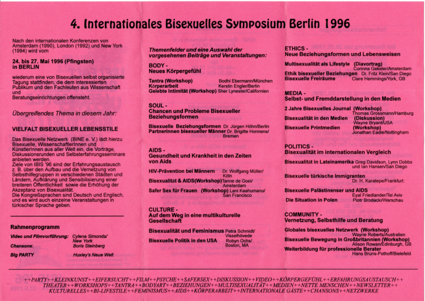 Du hast noch alte Fotos, Flyer oder sonstige Aufzeichnungen zur Bi+ Geschichte in Berlin und darüber hinaus, die du auch zugänglich machen möchtest? Melde dich bei uns unter history@biberlin.de oder biberlin@biberlin.de