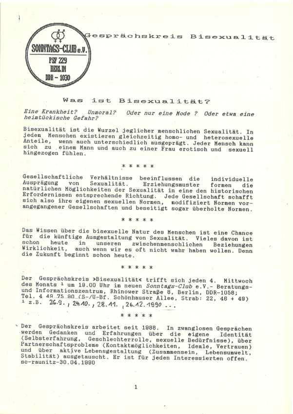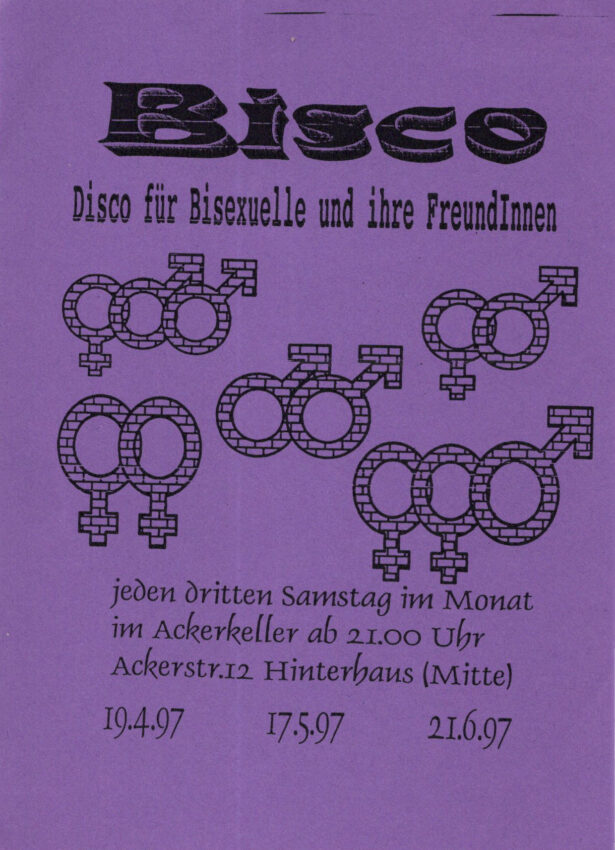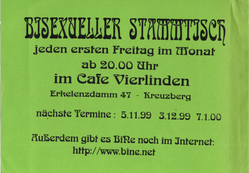 Die 1990er-Jahre waren eine prägende Phase für die Bi+ Community in Berlin. In einer Zeit politischer Umbrüche, wachsender queerer Sichtbarkeit und zugleich anhaltender Marginalisierung entstanden wichtige Räume der Begegnung, Selbstorganisation und Sichtbarkeit von Bi+ Personen.