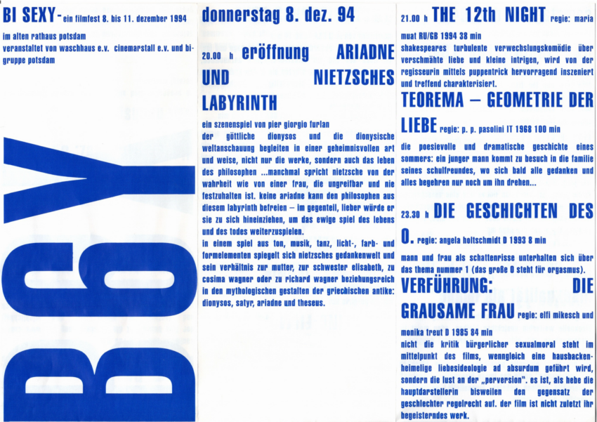 Gerade weil Bi+ Geschichte häufig unsichtbar gemacht oder anderen queeren Narrativen untergeordnet wird, sind visuelle Zeugnisse aus dieser Zeit von besonderer Bedeutung. Sie machen deutlich: Bi+ Community, Kultur und politische Präsenz haben in Berlin eine lange Kontinuität.