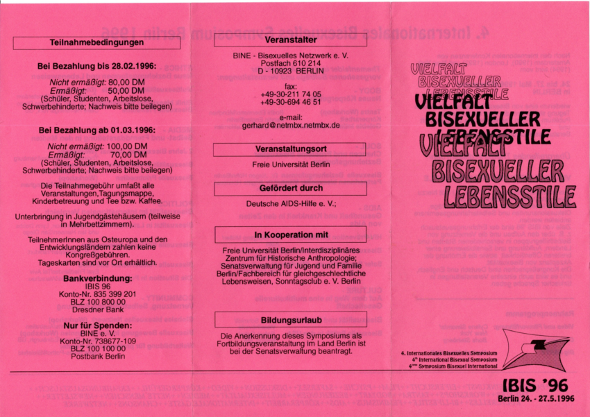 Du hast noch alte Fotos, Flyer oder sonstige Aufzeichnungen zur Bi+ Geschichte in Berlin und darüber hinaus, die du auch zugänglich machen möchtest? Melde dich bei uns unter history@biberlin.de oder biberlin@biberlin.de